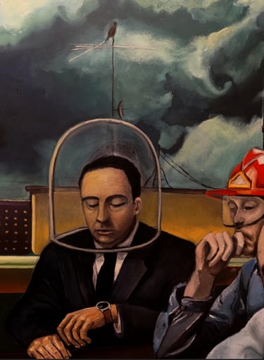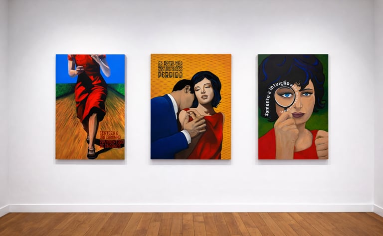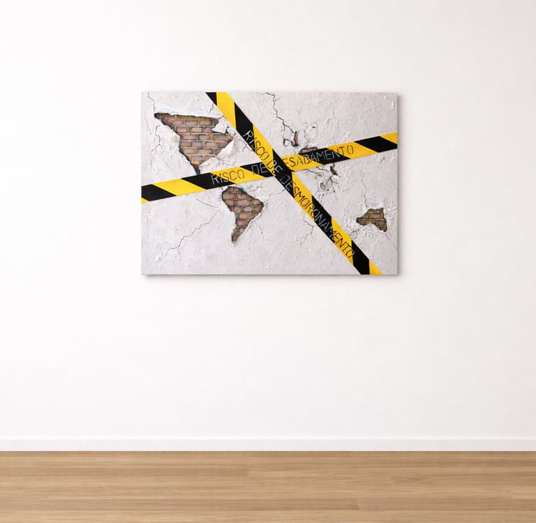 Nesse jogo de repetições, emerge uma pergunta: o que realmente está em disputa quando duas palavras assumem o lugar de horizonte político? Talvez a obra indique que o conflito anunciado não coincide com o eixo que de fato configura nossa vida coletiva. Há outra força em ação, mais paciente, mais eficaz, e é ela que a obra convida a perceber.